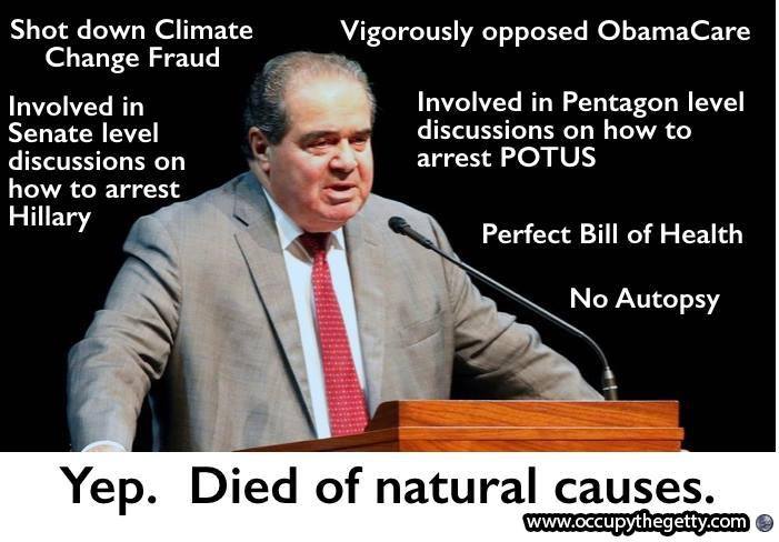No less than Donald Trump said in the days after Scalia’s death “They say they found a pillow on his face, which is a pretty unusual place to find a pillow.”