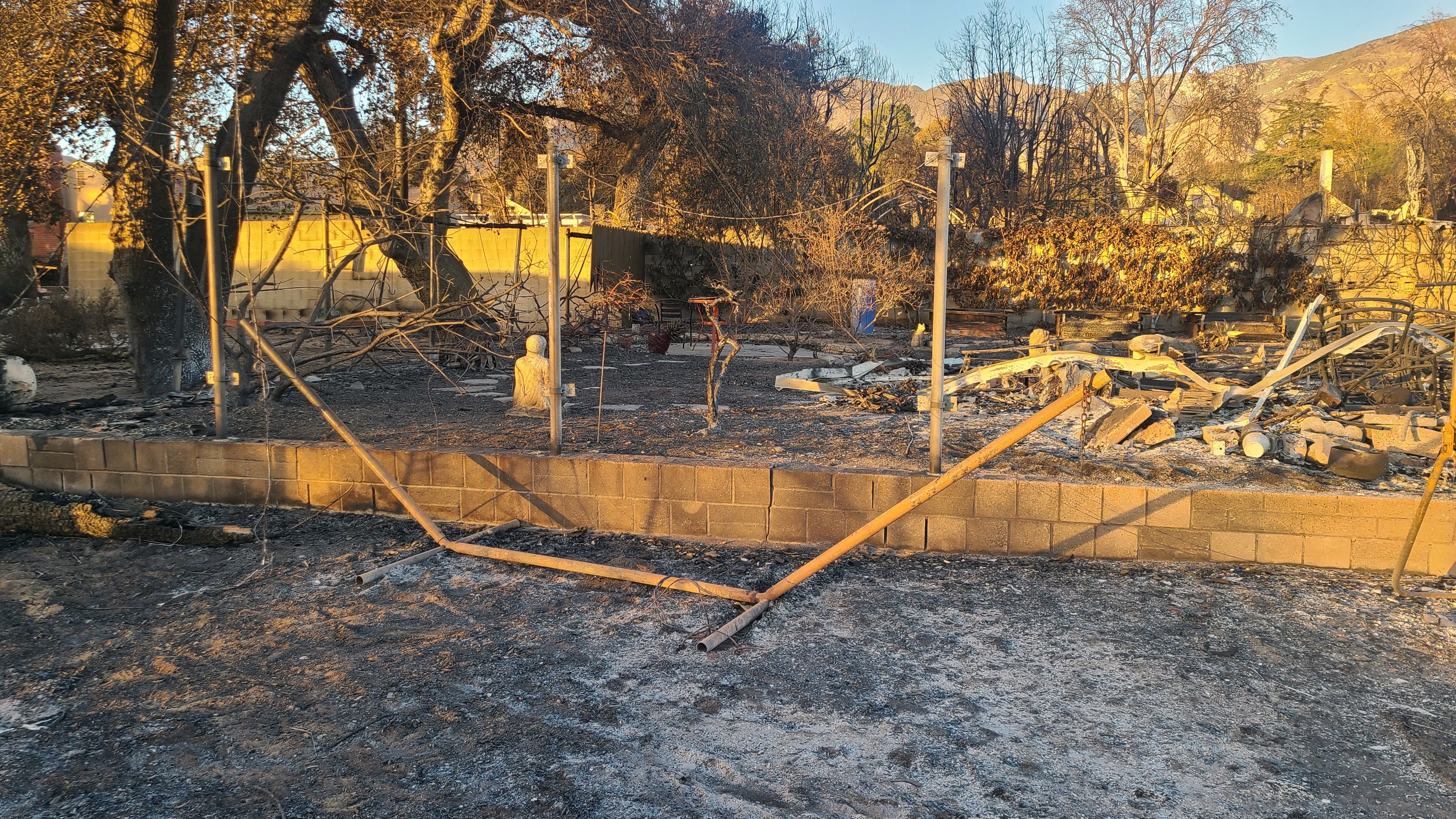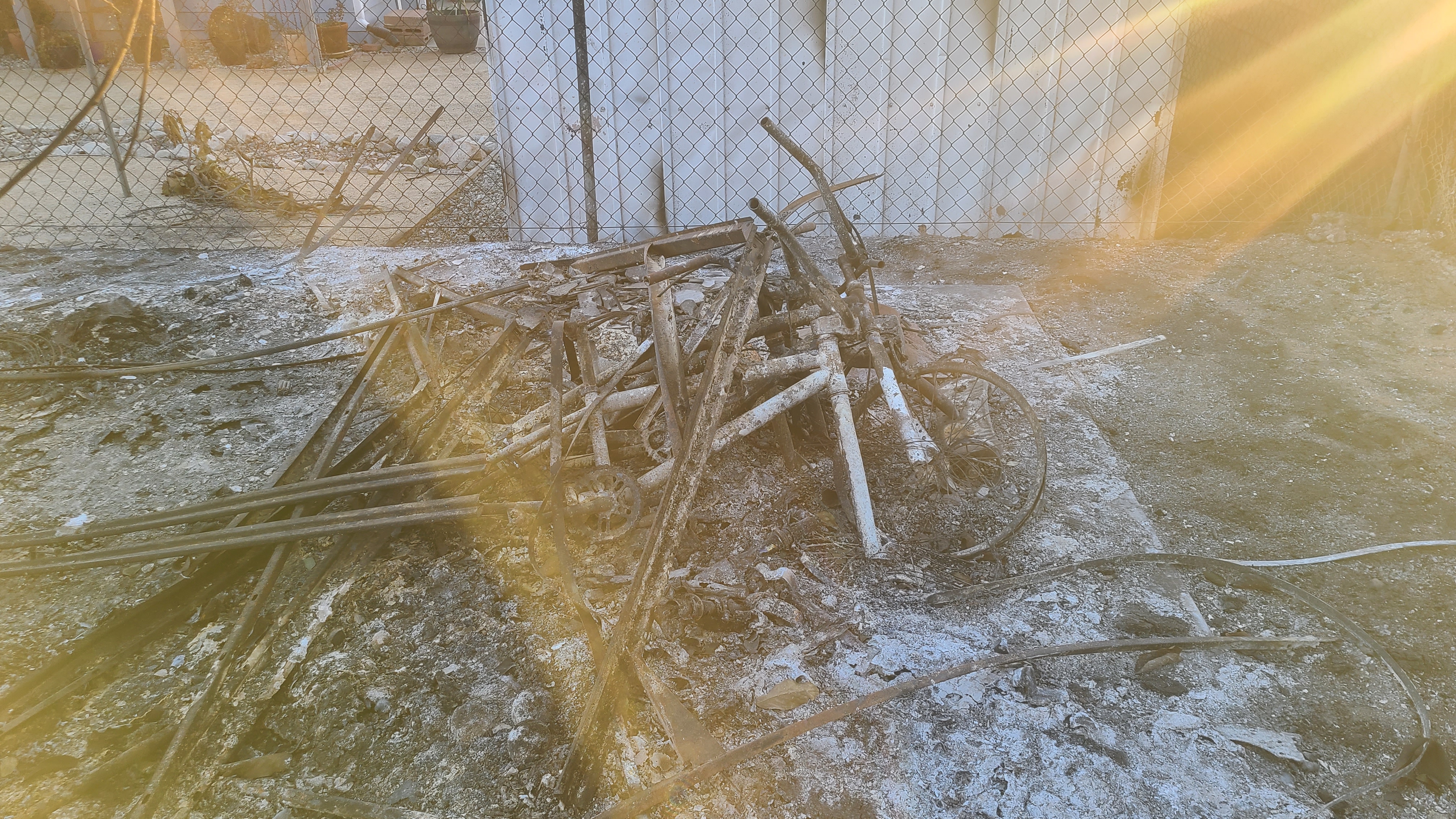 We probably shouldn’t have, but we walked the ground. Through the yard, up to the edge of the front porch, down the north side of the house, once nearly impassable due to rose bushes. We moved slowly, trying to take it all in – with no real urgency, because the clock had stopped ticking weeks ago. When it was time to go into the backyard, there was no need to open the gate to the back, the gate we’d prop open so the kids could ride their bikes or race their RC cars. We could just walk through the giant hole in it. It was a truly ugly sight. We saw dead and melted avocados on the grown, the skeletons of patio furniture, bits of glass and nails, and random crap too burned to identify.